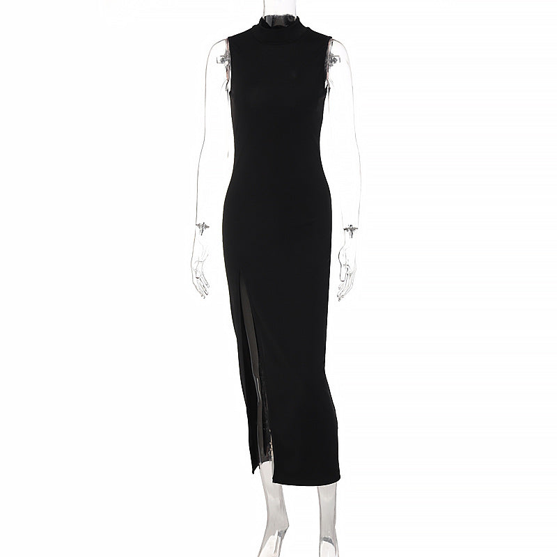 Make a head-turning entrance in a dress that captivates with stunning details! Addie features a sleeveless boat neck. padded cups with vertical seams at the bust. and an A-line silhouette with a high side slit. The back features a plunging open back with a wired V-shape boning for support and ruching at the lower back. The dress is composed of a lined crepe fabric that offers a form hugging fit with a moderate stretch. Complete look with rhinestone heels.