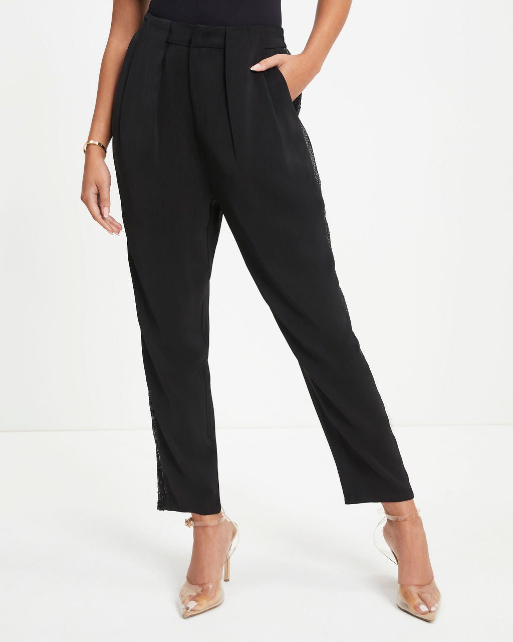 Cute for holiday parties. the Always A Party Sequin Contrast Pocketed Pants in black features a high rise.