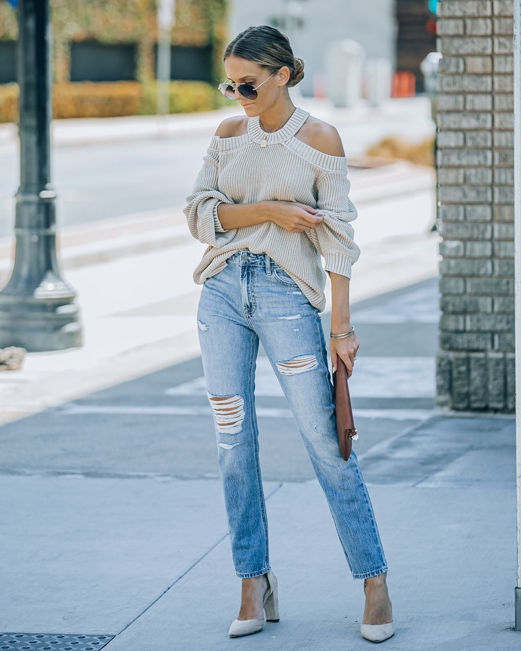 Styled with: Simple Bangle. Stella Clutch. Malia Sweater. and Ritz Heel.
