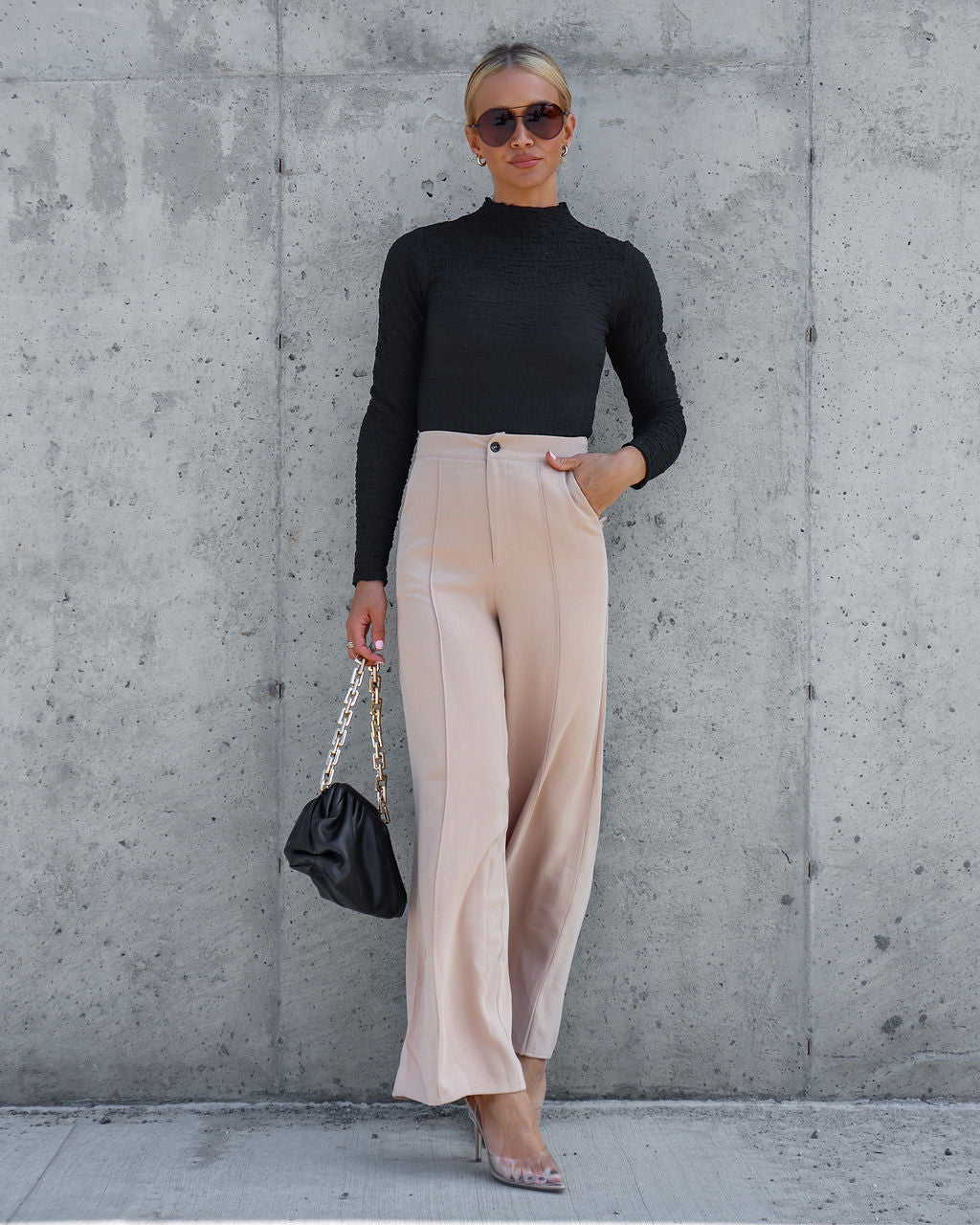 Trendy meets comfy in the Everyone Present Here Pocketed Trousers inbeige that feature a high rise.