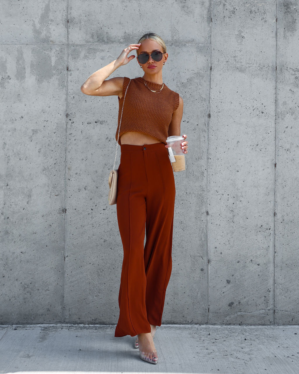Trendy meets comfy in the Everyone Present Here Pocketed Trousers in chestnut that feature a high rise.